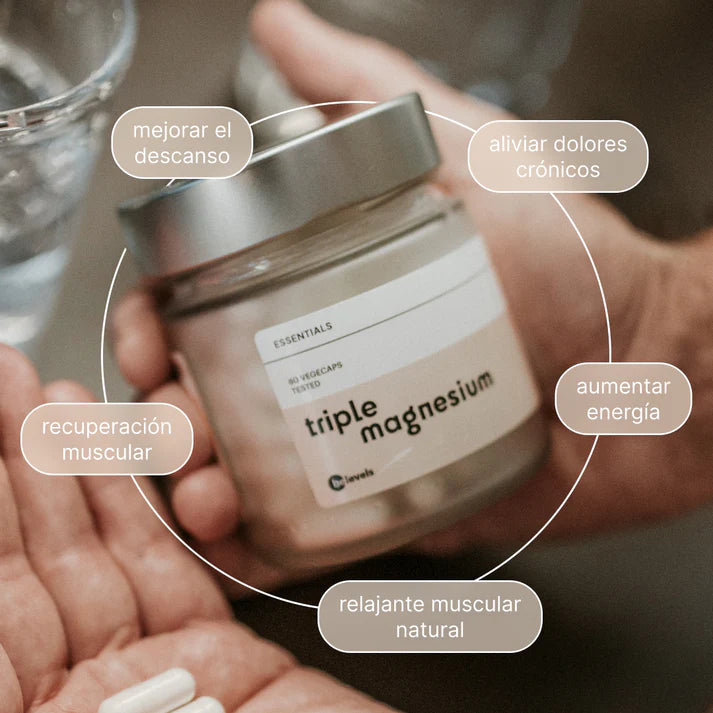 Este complejo revolucionario de Magnesio es una mezcla de tres formas altamente absorbibles del mineral esencial Magnesio que ayuda a disminuir la fatiga y cansancio, mejorando la recuperación y el descanso, y con beneficios para el buen funcionamiento del sistema nervioso, cardiaco y correcto funcionamiento cerebral.
